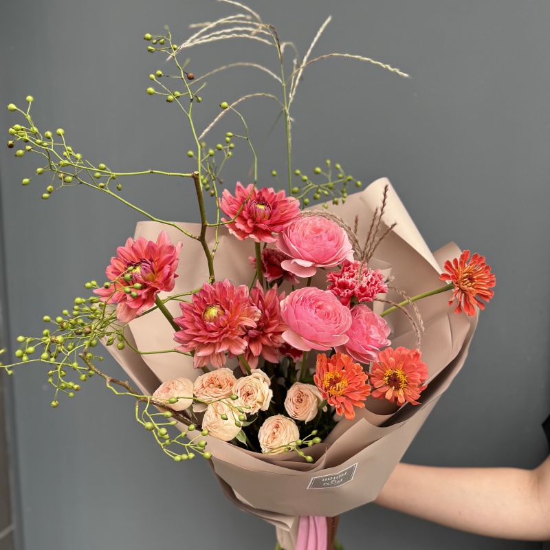 Каждый букет мы ставим в транспортировочный бокс, прикладываем карточку по уходу и подкормку Chrysal, которая продлевает жизнь букета.