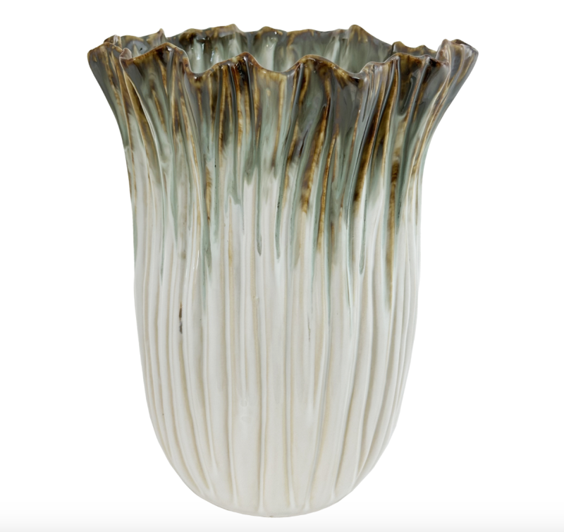 Ваза керамическая бело-зелен-коричневая д24