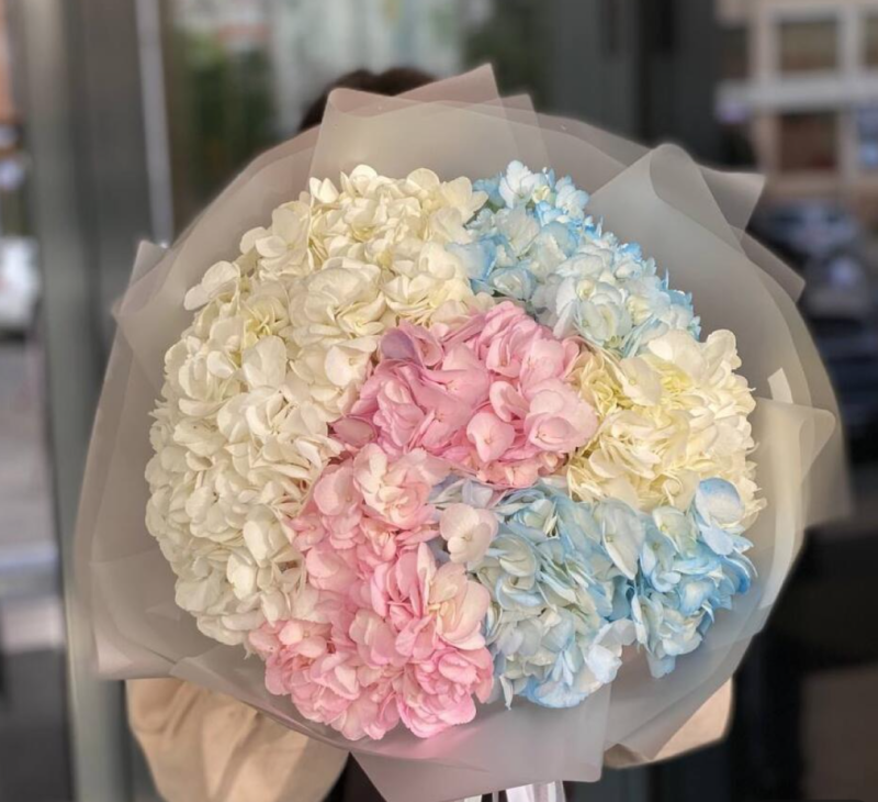 Монобукет из 7 гортензий 3-х цветов