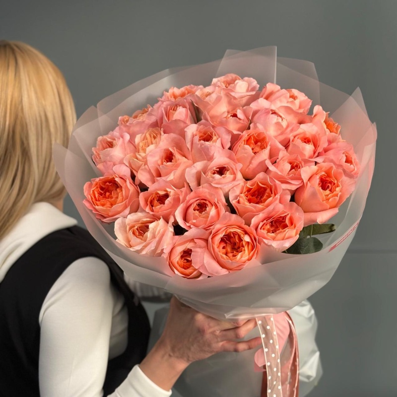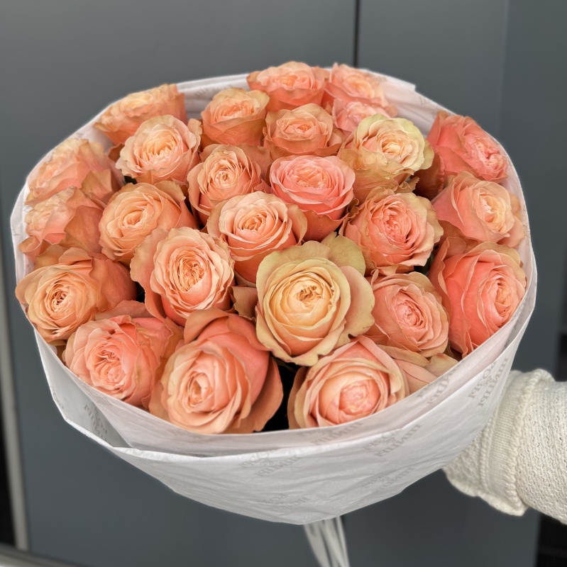 Монобукет из 25 пионовидных роз сорта Kahala (Кахала)