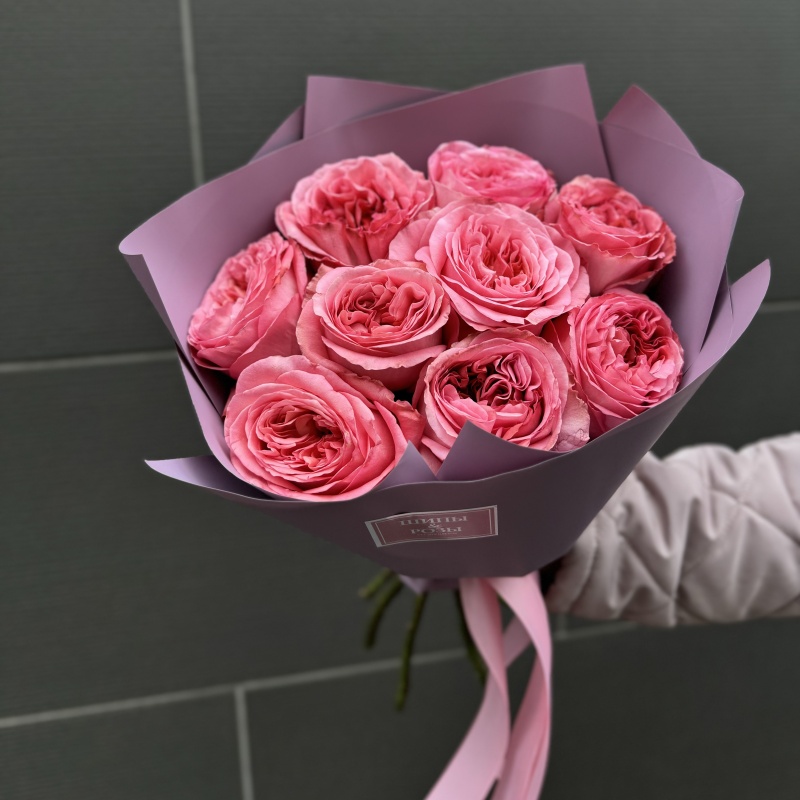 Монобукет из 9 пионовидных роз сорта Пинк Экспрешен