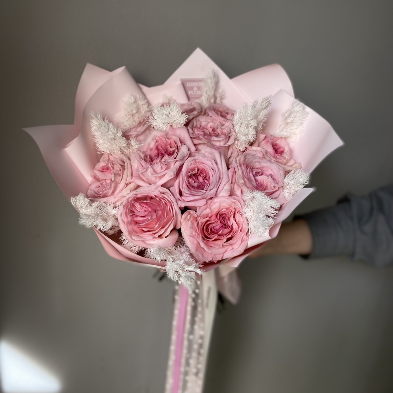 Монобукет из 11 пионовидных роз сорта Пинк Охара
