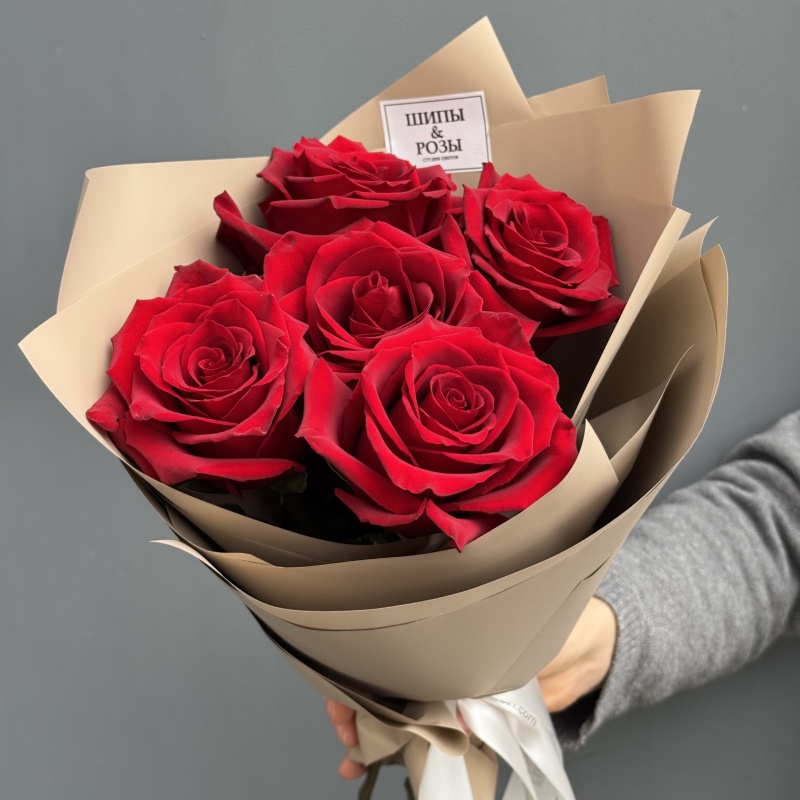 Монобукет из 5 красных роз сорта Explorer (Эксплорер)