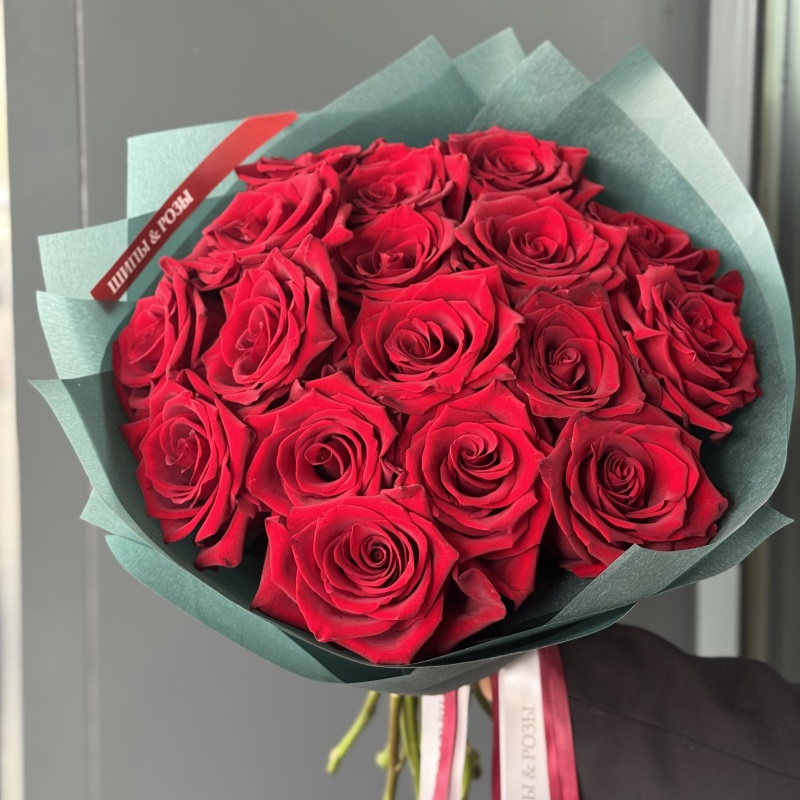 Монобукет из 17 красных роз сорта Explorer (Эксплорер)