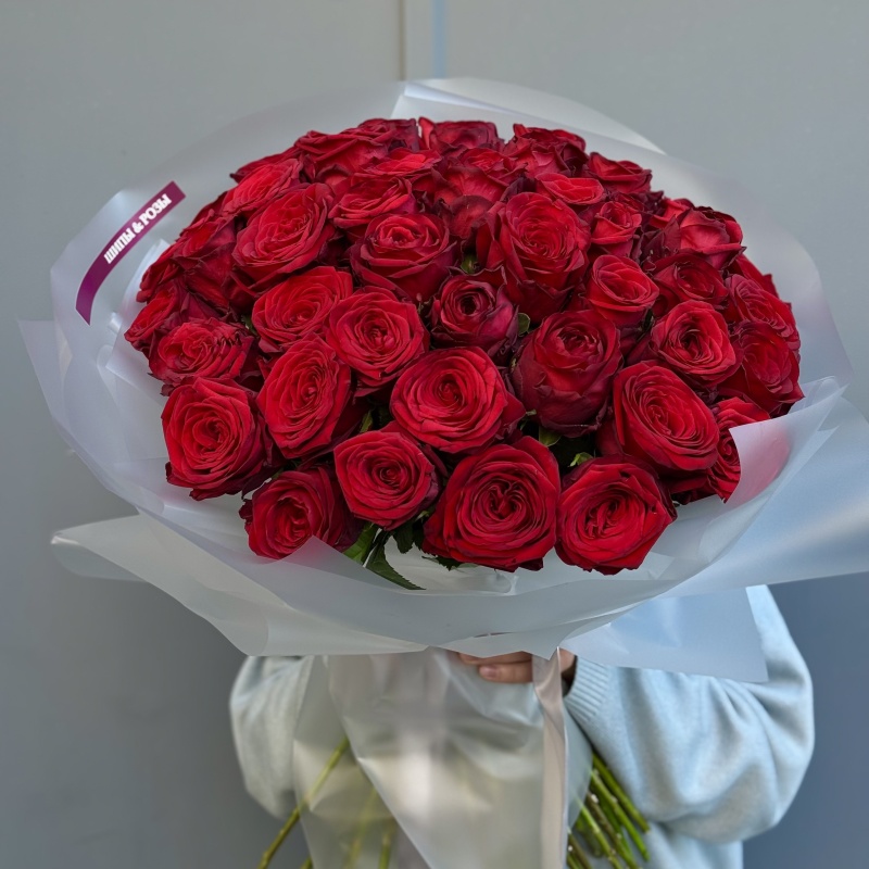 БУКЕТ ИЗ 51 РОЗЫ СОРТА РЕД НАОМИ.