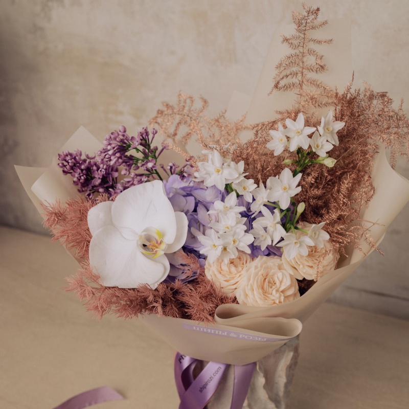 Наши флористы собирают уникальные букеты, учитывая ваши пожелания. В составе букетов присутствуют сезонные цветы, наличие которых зависит от времени года. При отсутствии каких-то цветов, мы предложим вам равноценную альтернативу, сохраняя гамму и стиль букета.