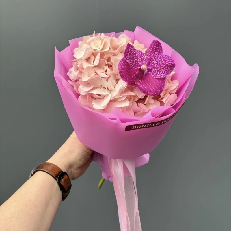 Минибукет из гортензии и ванды.