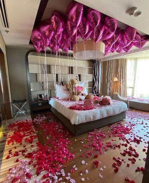 Шары сердца с лепестками роз