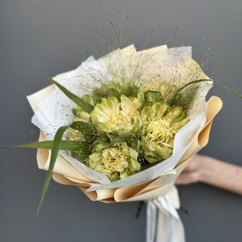 Каждый букет мы ставим в транспортировочный бокс, прикладываем карточку по уходу и подкормку Chrysal, которая продлевает жизнь букета.