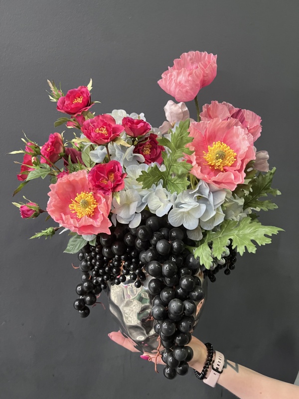 Композиция из искусственных цветов.