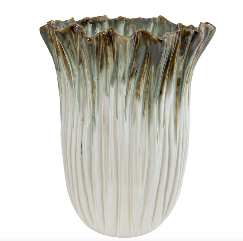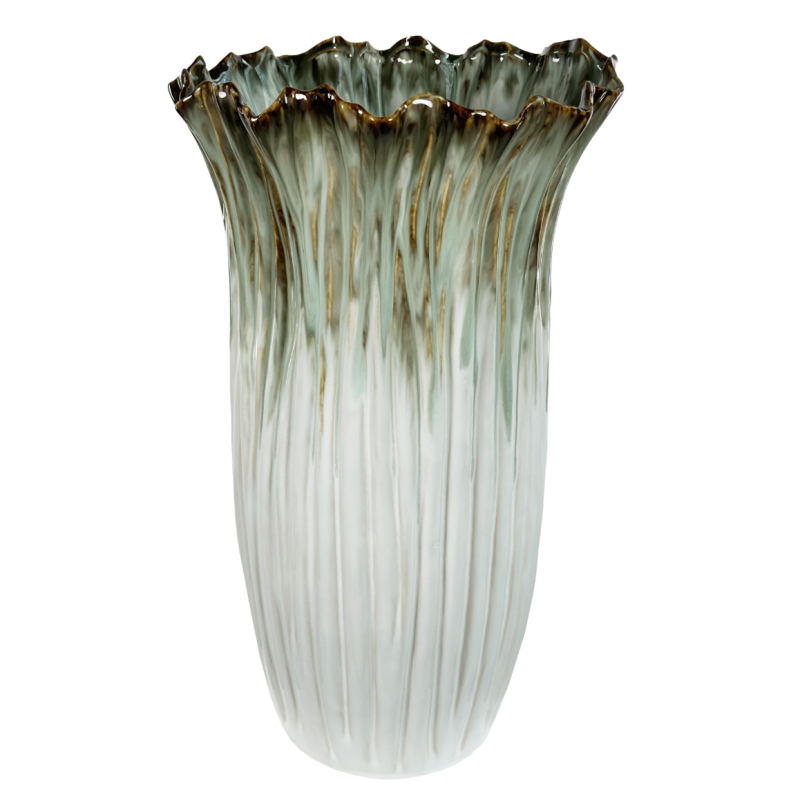 Ваза керамическая бело-зелено-коричневая д36 в60 Shishi