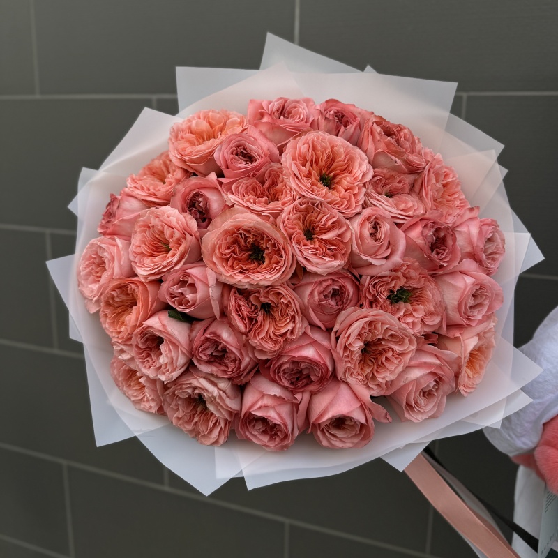 Монобукет из 35 пионовидных роз сорта Mandarin