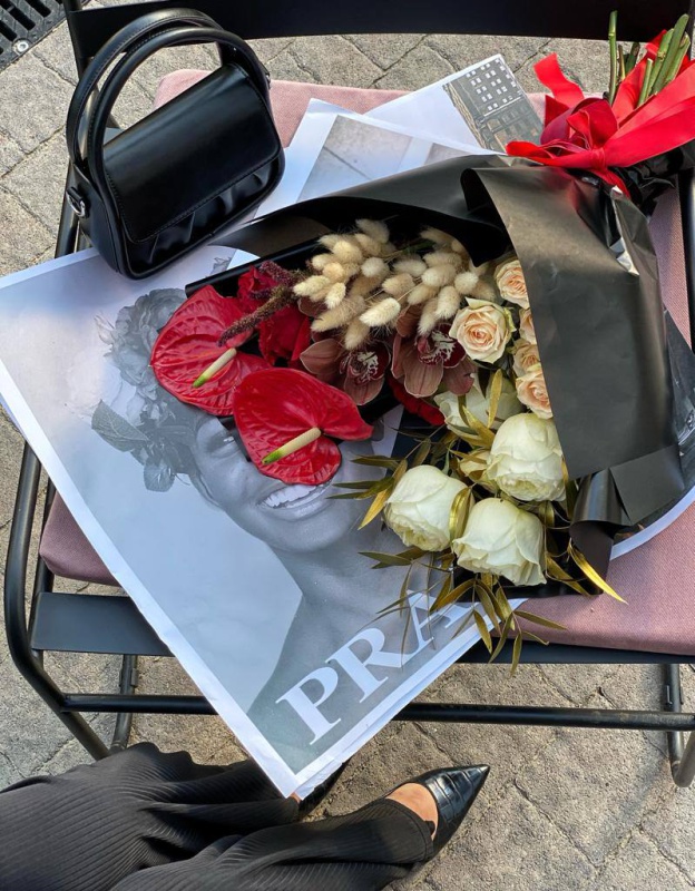 Каждый букет мы ставим в транспортировочный бокс, прикладываем карточку по уходу и подкормку Chrysal, которая продлевает жизнь букета.