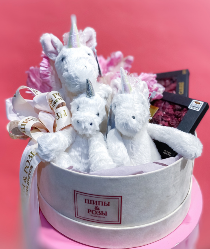 Состав подарочного набора: Мягкие игрушки, Цветы, Шоколад