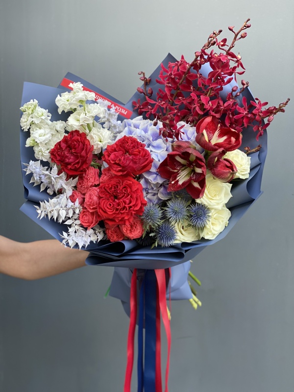 Наши флористы собирают уникальные букеты, учитывая ваши пожелания. В составе букетов присутствуют сезонные цветы, наличие которых зависит от времени года. При отсутствии каких-то цветов, мы предложим вам равноценную альтернативу, сохраняя гамму и стиль букета.