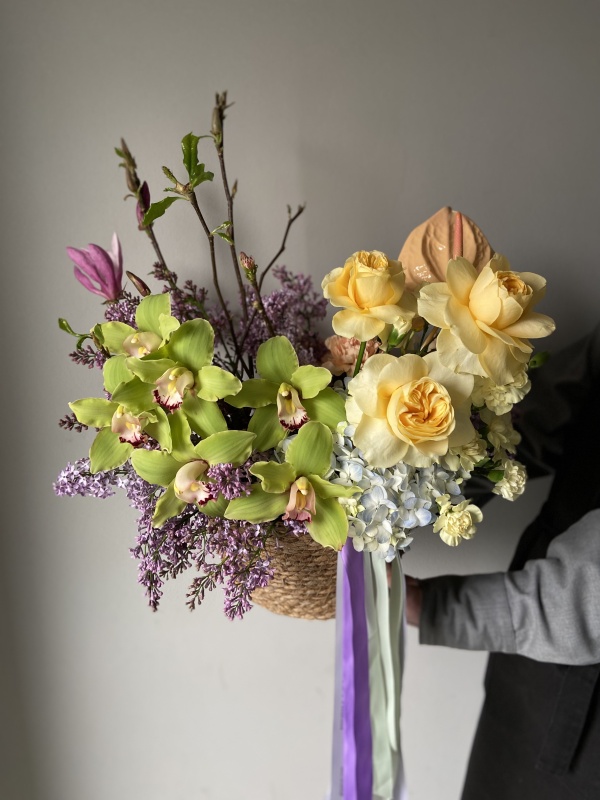 Наши флористы собирают уникальные букеты, учитывая ваши пожелания. В составе букетов присутствуют сезонные цветы, наличие которых зависит от времени года. При отсутствии каких-то цветов, мы предложим вам равноценную альтернативу, сохраняя гамму и стиль букета.