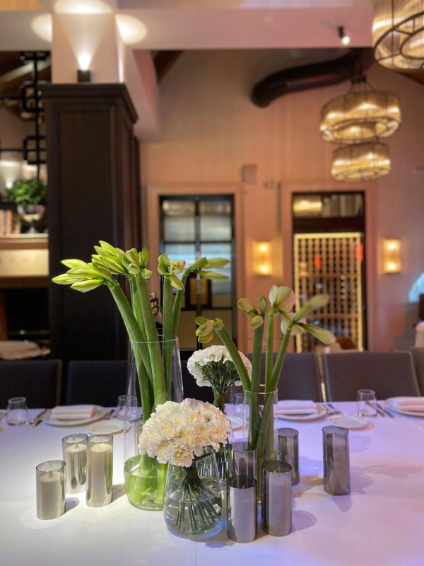 Оформление столов цветами задает праздничный тон и отвечает оригинальной концепции.
