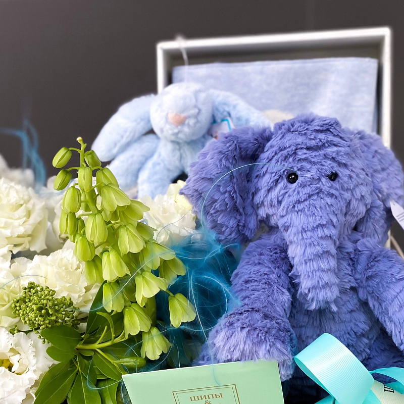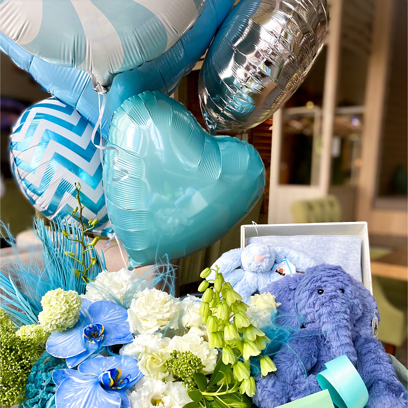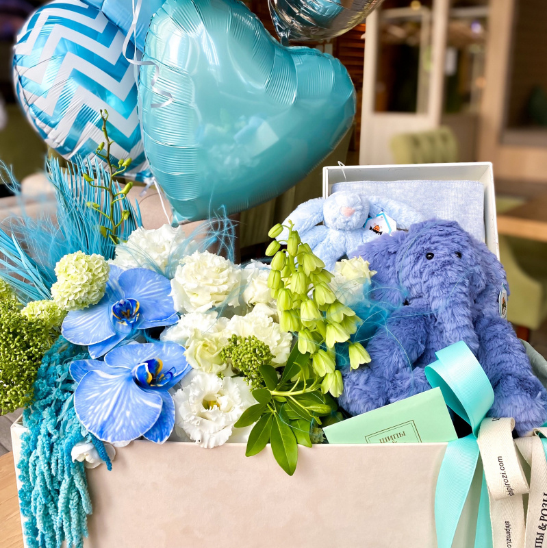 Состав подарочного набора: Мягкие игрушки, Цветы, Шоколад, Воздушные шары