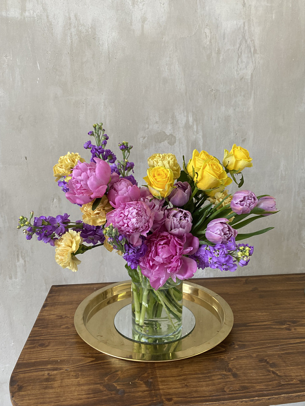 Для каждой следующей доставки вы можете выбирать цветовую гамму, состав и стиль букетов.