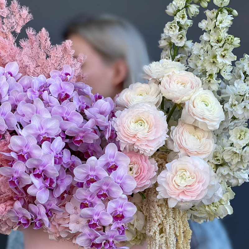 Наши флористы собирают уникальные букеты, учитывая ваши пожелания. В составе букетов присутствуют сезонные цветы, наличие которых зависит от времени года. При отсутствии каких-то цветов, мы предложим вам равноценную альтернативу, сохраняя гамму и стиль букета.
