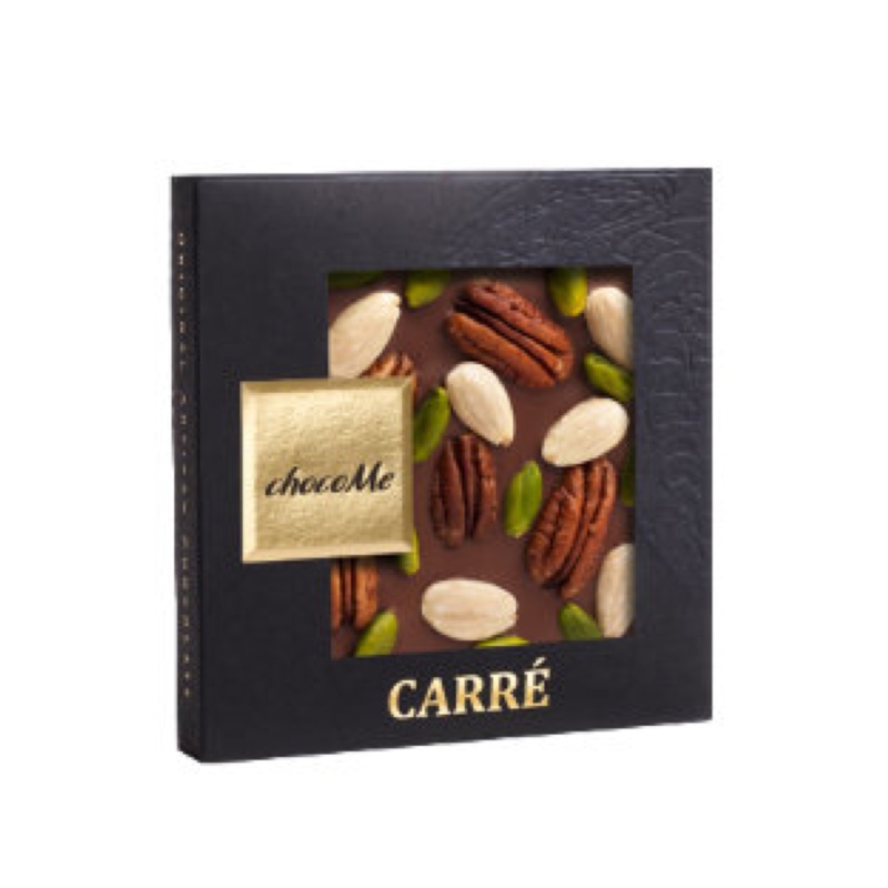 Молочный шоколад с орехами пекан, фисташками Бронте и миндалем