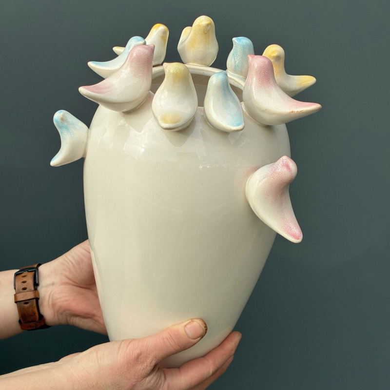 Ваза с птичками керамика