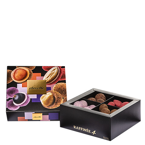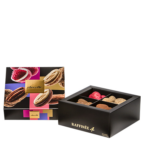 Конфеты Raffinee из молочного, светлого, белого и рубинового шоколада с фруктами и орехами