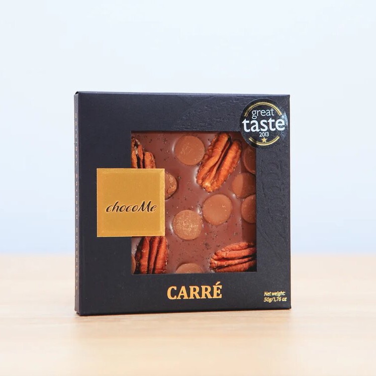 Молочный шоколад с ванильной морской солью из Таити, орехами пекан и карамелью